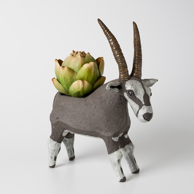 鹿児島県指宿市の陶芸作家Nagisa工房さんの陶芸作品です。 ---------------------- ・作品について 陶芸作品サイズ:長さ20cm×高さ14cm×幅10cm ---------------------- 焼物で作られた草食動物オリックスの花器です。 可愛らしいデザインで、どんなお部屋にも溶け込む優しい雰囲気を醸し出します。 花を生けるだけでなく、小物入れとしてもご使用いただけ、実用性と芸術性を兼ね備えた一品です。 この花器があれば、自然を感じる温かい空間を演出できることでしょう。 贈り物としても喜ばれるアイテムですので、大切な方への特別なギフトにもぴったりです。 日々の生活に彩りを添えてみてはいかがでしょうか。 ---------------------- ※写真の植物はサンプルです、商品には含まれません。 Nagisa工房 Instagram https://www.instagram.com/nagisakoubou/