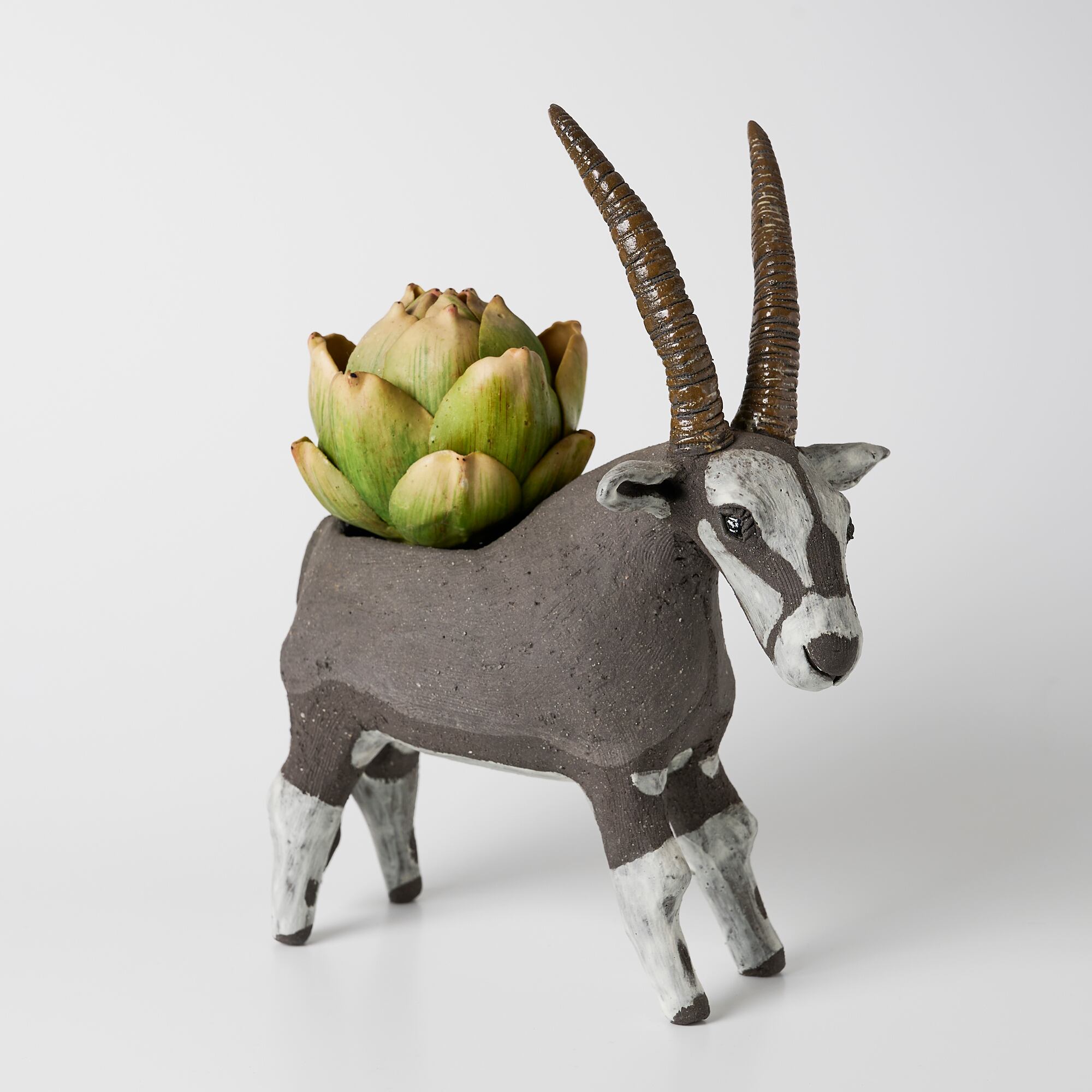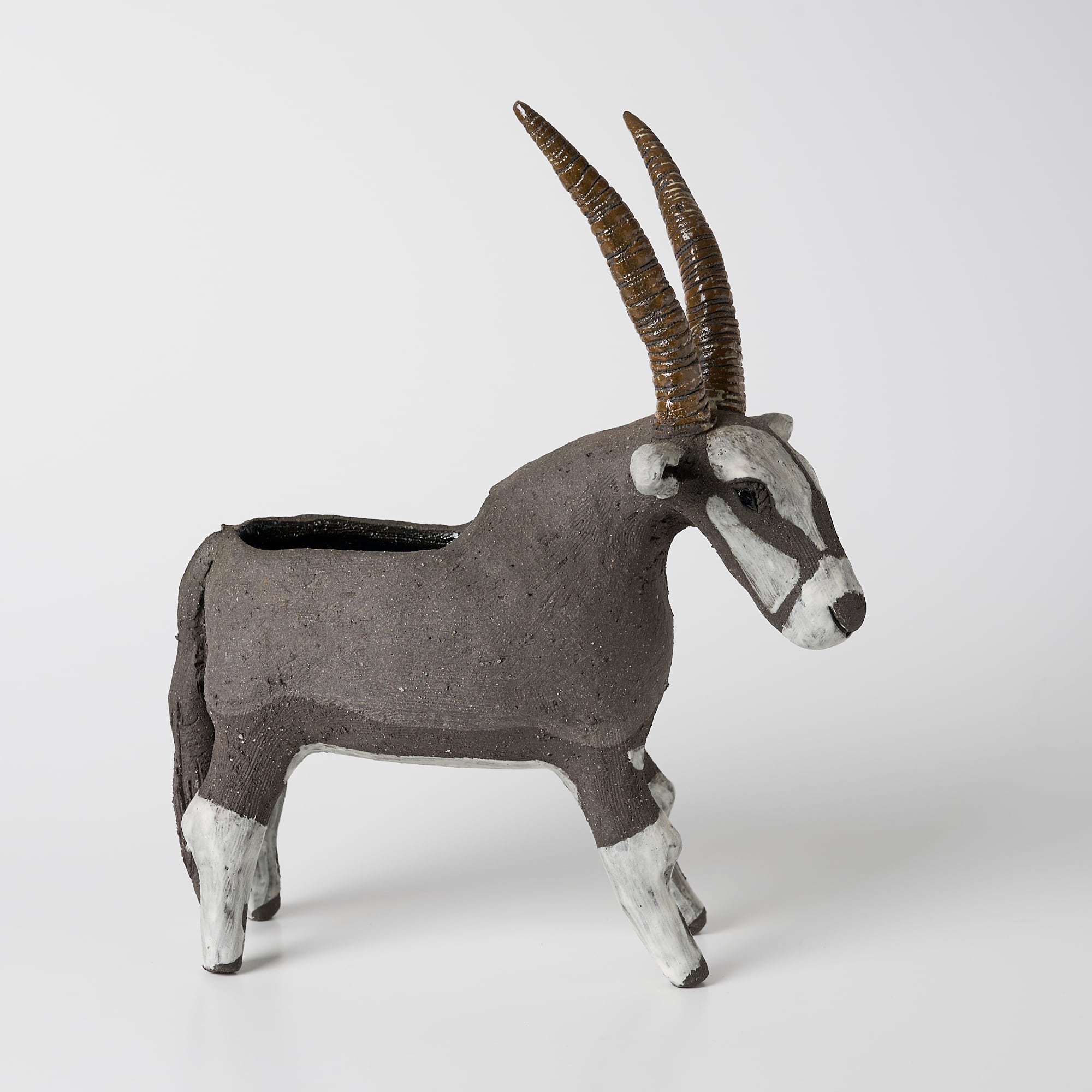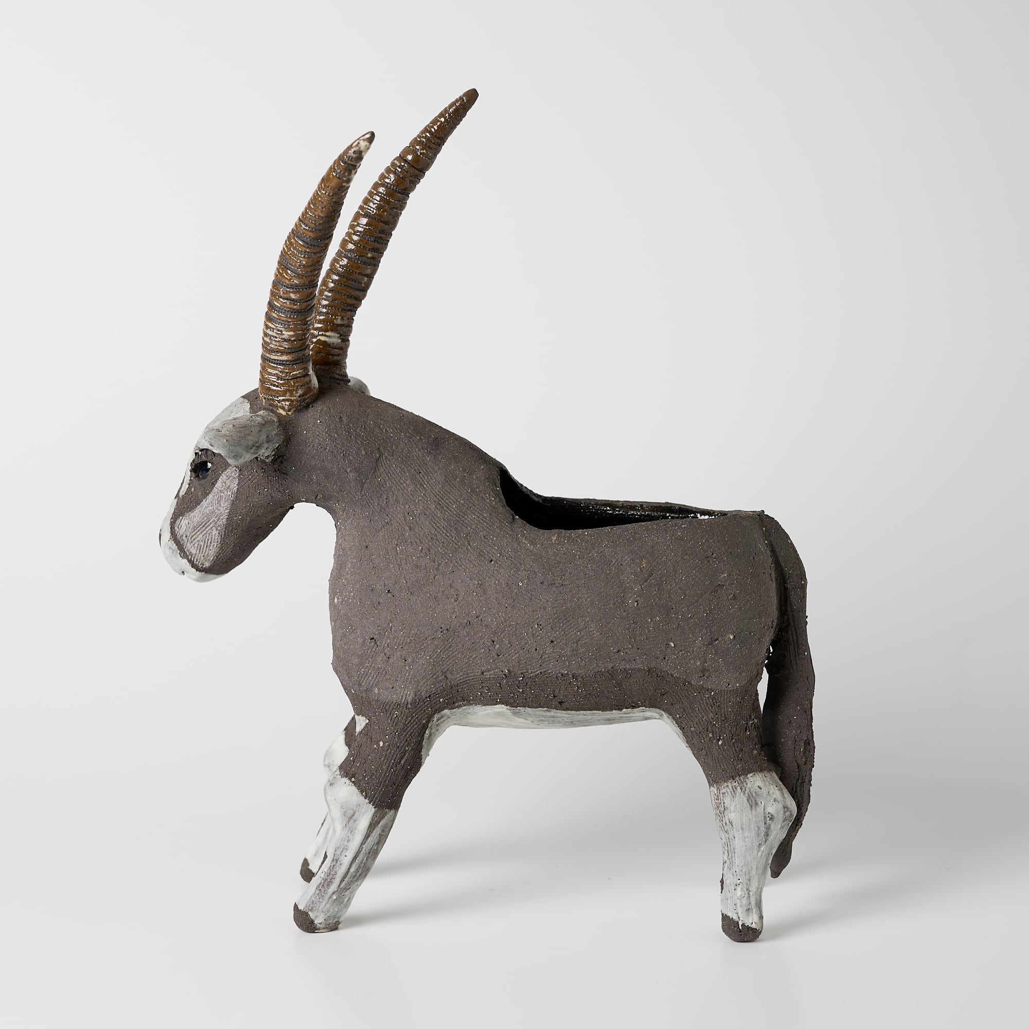 焼物で作られた草食動物オリックスの花器です。